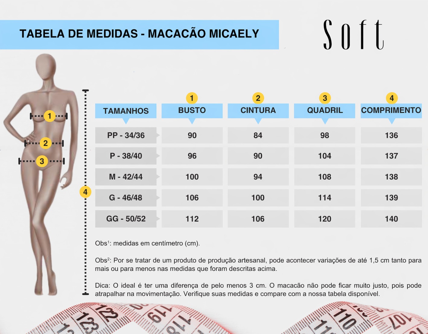 Para manter seu Macacão Feminino Micaely sempre impecável, recomendamos lavar à mão ou em ciclo suave na máquina, não usar alvejante e secar pendurado. Passar em temperatura baixa se necessário.